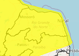 O alerta emitido tem nível de severidade considerado ‘perigo potencial’.