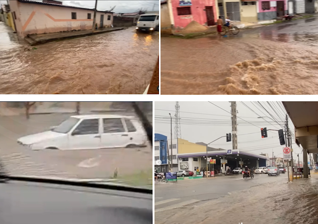 Como acontece quando da ocorrência de chuvas mais volumosas, ruas ficaram alagadas, calçadas foram invadidas pelas águas e carros ficaram parcialmente submersos. Confira nas imagens acima.
